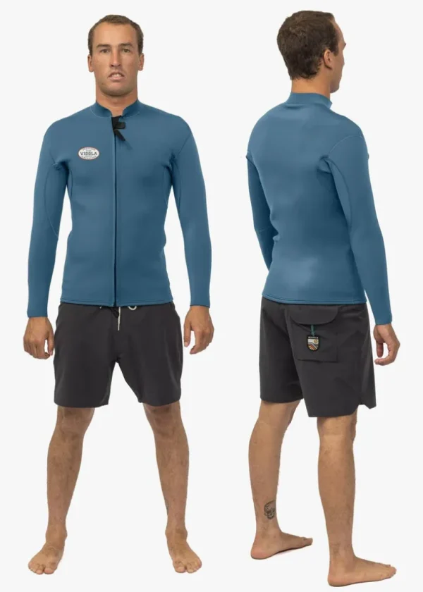 Front Zip Jacket with 2mm neoprene body in super stretch fabric, triple glued inside and blind stitched sealed seams.