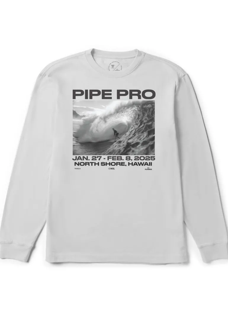 The official design of the 2025 WSL Pipe Pro. Printed on a 4.5oz, 100% cotton, ring-spun soft washed regular fit long sleeve tee. Made by the official outfitters, Vissla and Florence.