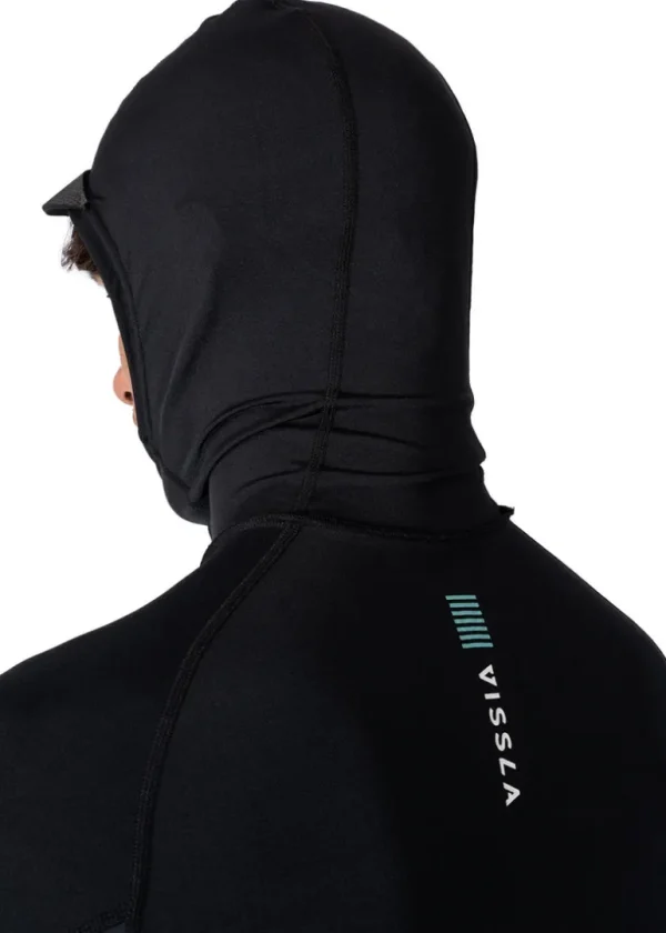 This rash guard offers a tight fit and a hood for maximum UPF protection. It is made with 5oz soft cool fabric and features a screen print logo on the front chest. Additionally, it includes an elastic loop at the front bottom hem. Constructed with 85% recycled poly and 15% recycled spandex, it provides UVA/UVB protection of 50+ and quick-dry and antimicrobial properties.